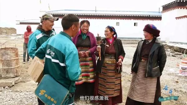 藏族阿媽排著隊(duì)等待領(lǐng)包裹,壯實(shí)的漢子來取網(wǎng)購的棉服,村委會(huì)主任迫不及待地翻看新到的報(bào)紙……