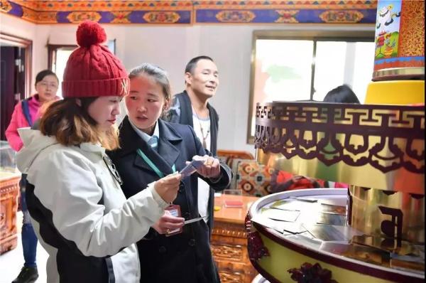 扎什倫布寺,來自香港的游客在展示中國郵政設(shè)計制作的景區(qū)門票。西藏郵政以深度融合西藏旅游文化、西藏民俗文化和郵政文化為核心,以郵政先進的網(wǎng)絡(luò)、技術(shù)為支撐,服務(wù)景區(qū),服務(wù)游客,融入西藏旅游發(fā)展熱潮,助推西藏旅游經(jīng)濟的發(fā)展。