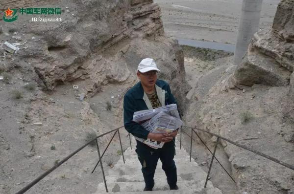 青藏線某戰(zhàn)士簽收葛軍送來的郵件。