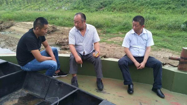 他(左一)前往江蘇,實地走訪船舶貸款客戶