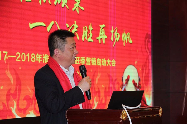 他作為“行內(nèi)營銷冠軍”在淮南市分行2018年度旺季營銷啟動大會上發(fā)言