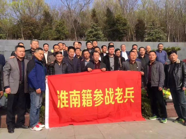 清明節(jié)前夕,“老兵”朱滿順(前排左五)與戰(zhàn)友共同祭拜烈士