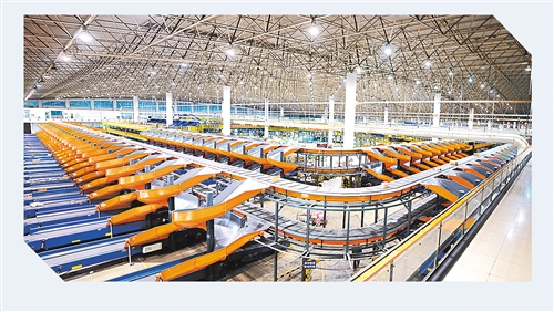中國郵政現(xiàn)代化的自動分揀中心。 記者 吉蕾蕾攝