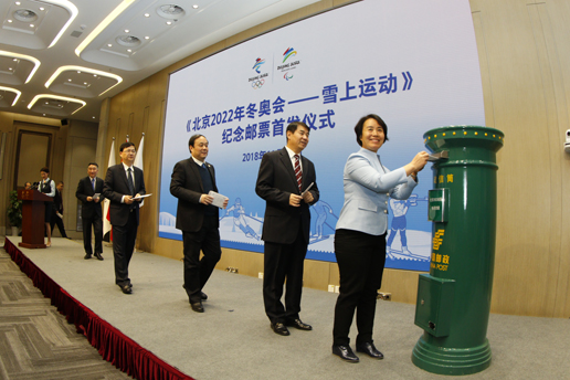 2018年11月16日,北京2022年冬奧會(huì)和冬殘奧會(huì)組委會(huì)(以下簡(jiǎn)稱北京冬奧組委)與中國(guó)郵政集團(tuán)公司聯(lián)合舉辦了“《北京2022年冬奧會(huì)——雪上運(yùn)動(dòng)》紀(jì)念郵票首發(fā)儀式”,北京冬奧組委秘書長(zhǎng)韓子榮和中國(guó)郵政集團(tuán)公司黨組副書記李丕征共同為紀(jì)念郵票揭幕。