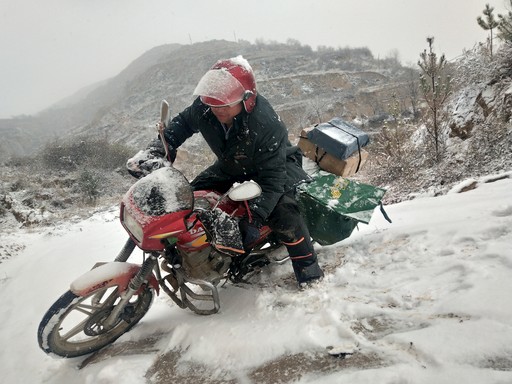 連日來(lái),甘肅多地普降大雪,連續(xù)的風(fēng)雪惡劣天氣給正值高峰的“雙11”投遞工作帶來(lái)了嚴(yán)峻考驗(yàn),尤其是在路況很差的鄉(xiāng)村地區(qū)。但投遞員們不懼風(fēng)雪,全力以赴,準(zhǔn)確、及時(shí)地將一件件包裹送到用戶手中,至11月19日,甘肅郵政“雙11”進(jìn)口郵件妥投率為95%。圖為11月16日,慶陽(yáng)市華池縣城壕鎮(zhèn)郵政所鄉(xiāng)郵員趙元瑞冒雪投遞。 □徐向釗 攝影報(bào)道