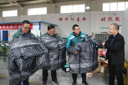 “這擋風被真厚實?!?1月17日,河南省衛(wèi)輝市郵政分公司“三合一”郵件處理場地的投遞員們拿著新發(fā)放的棉帽子、棉手套、電動車擋風被等御寒保暖勞保用品感慨道。□劉艷玲 攝