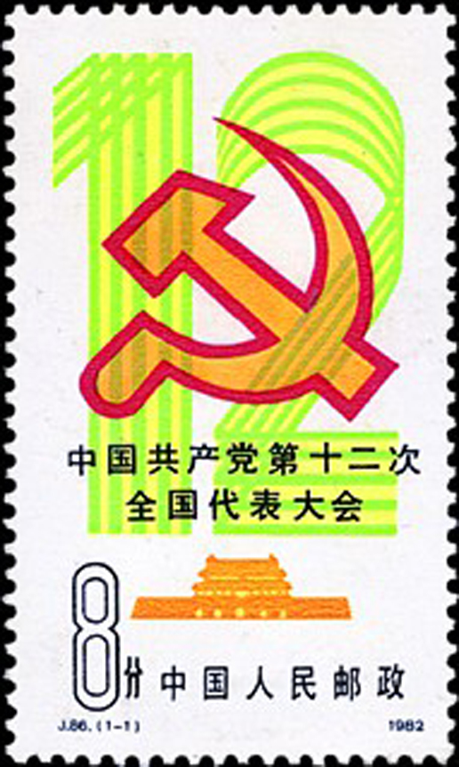 中國(guó)共產(chǎn)黨第十二次全國(guó)代表大會(huì)于1982年9月1日至11日在北京召開(kāi)。參加這次大會(huì)的正式代表1600人(出席開(kāi)幕式1545人),候補(bǔ)代表160人(出席開(kāi)幕式145人),代表著全國(guó)3965萬(wàn)黨員。該套郵票由盧天驕設(shè)計(jì),于1982年9月1日發(fā)行。