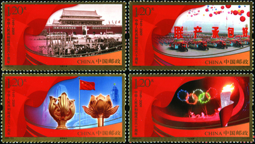 2009年10月1日是中華人民共和國(guó)成立60周年紀(jì)念日。60年來(lái),全國(guó)各族人民在中國(guó)共產(chǎn)黨的領(lǐng)導(dǎo)下,以一往無(wú)前的進(jìn)取精神和波瀾壯闊的創(chuàng)新實(shí)踐,譜寫(xiě)了中華民族自強(qiáng)不息、頑強(qiáng)奮進(jìn)的壯麗史詩(shī)。該套郵票由張藝謀、陳名杰設(shè)計(jì),于2009年10月1日發(fā)行。