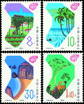 1998年4月13日是海南建省十周年,郵票所展現(xiàn)的是這個(gè)年輕的省份日新月異的變化。該套郵票由楊文清、閻炳武設(shè)計(jì),于1998年4月13日發(fā)行。