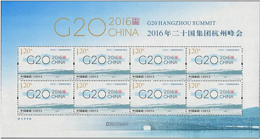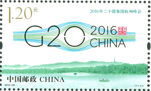 二十國(guó)集團(tuán)(G20)領(lǐng)導(dǎo)人第十一次峰會(huì)于2016年9月4日至5日在浙江省杭州市舉辦,這是中國(guó)首次主辦二十國(guó)集團(tuán)峰會(huì)。中國(guó)郵政于2016年8月27日發(fā)行《2016年二十國(guó)集團(tuán)杭州峰會(huì)》紀(jì)念郵票1套1枚,杭州峰會(huì)會(huì)標(biāo)圖案由20根線(xiàn)條勾勒出一個(gè)橋形輪廓,寓意二十國(guó)集團(tuán)已成為全球經(jīng)濟(jì)增長(zhǎng)之橋、國(guó)際社會(huì)合作之橋、面向未來(lái)的共贏(yíng)之橋。該套郵票由何潔、孟夢(mèng)設(shè)計(jì)。