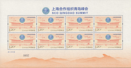 《上海合作組織青島峰會(huì)》郵票版式二(絹質(zhì)品種)