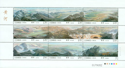 中國(guó)郵政于2014年8月23日發(fā)行《黃河》特種郵票1套9枚,郵票內(nèi)容分別為:大河之源、九曲過(guò)城、塞上江南、河套穹野、壺口金濤、水環(huán)三晉、山攬河洛、中州水韻、河清海晏。郵票以九圖連票,全景呈現(xiàn)黃河流域的自然生態(tài)和歷史人文景觀(guān),展示出黃河的磅礴外貌和深厚底蘊(yùn)。該套郵票采用油畫(huà)的形式、散點(diǎn)式的構(gòu)圖創(chuàng)作而成,和2014年發(fā)行的《長(zhǎng)江》在風(fēng)格、規(guī)制上形成“姊妹篇”。設(shè)計(jì)者袁加以極強(qiáng)的概括能力,將各種人文景觀(guān)、物質(zhì)遺產(chǎn)和建設(shè)成就等穿插其間,猶如散布在母親河畔的珍珠,整體構(gòu)成一幅熠熠生輝的圖景。