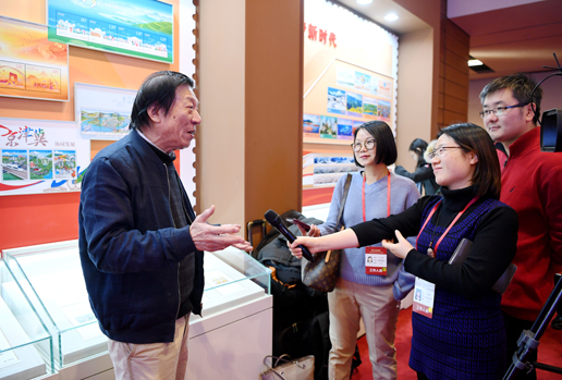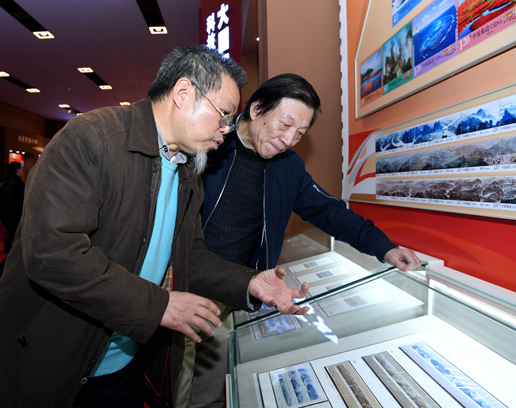 莊嚴(yán)的國家博物館人流不息,“偉大的變革——慶祝改革開放40 周年”大型展覽熱度依舊。隨著展覽的推進(jìn),《改革開放40 年——中國郵票》展區(qū)獲得了越來越多人的關(guān)注,上到坐著輪椅的耄耋老人,下至朝氣蓬勃的在校學(xué)生,都被精美的郵票和精致的布局所吸引。12月11日,這里又迎來了特殊的參觀者——中央電視臺(tái)高級(jí)編輯、中華全國集郵聯(lián)合會(huì)會(huì)士李近朱和《長城》特種郵票設(shè)計(jì)者、著名畫家許仁龍。