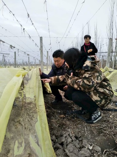 郵儲信貸客戶經(jīng)理到團(tuán)場農(nóng)地里進(jìn)行貸前調(diào)查。