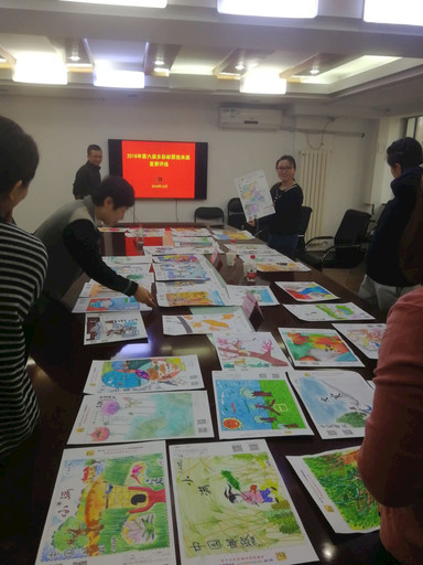 北京分公司少兒郵票設(shè)計大賽作品評審現(xiàn)場。