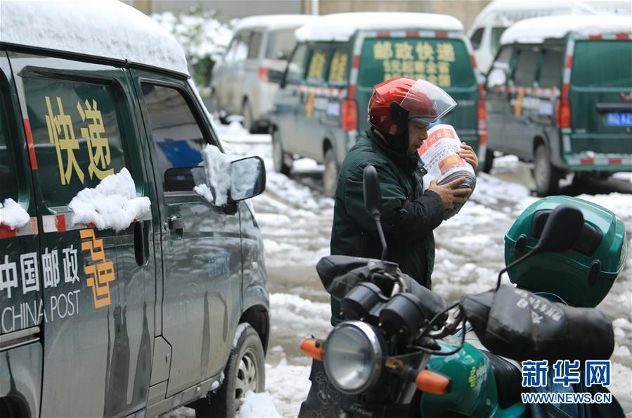 連日來,我國多地迎來降雪天氣,不少戶外工作者不懼嚴(yán)寒,堅(jiān)守崗位。12月31日,在貴州玉屏侗族自治縣郵政局,投遞員姚茂賢準(zhǔn)備投送剛剛送達(dá)的報(bào)紙。