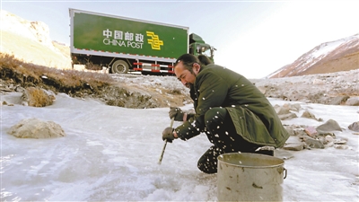 如今,多吉的小兒子扎西澤翁也成了雪線郵路上的一名郵運(yùn)人。最小的徒弟洛絨牛擁,也可以單獨(dú)開車上路了。一個(gè)人的郵路是寂寞的,郵路上,有屬于郵政人的自豪和驕傲。