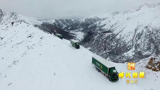 天地間,綠色郵車穿行雪山,陪著他們的,是天上的雄鷹!