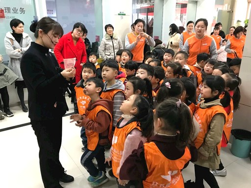 這些小朋友平時(shí)知道父母存錢、取錢到銀行,但對(duì)銀行的工作環(huán)境、錢從哪兒來、假幣是什么樣等卻不知道。營(yíng)業(yè)部員工為孩子們一一講解,并帶他們參觀自助柜員機(jī)、點(diǎn)鈔機(jī)、填單機(jī)等,教他們識(shí)別假幣,并和小朋友們互動(dòng),體驗(yàn)服務(wù)與被服務(wù)的過程。