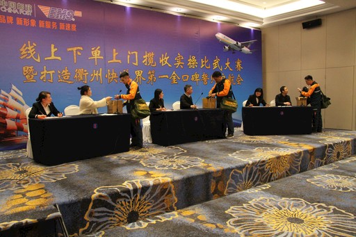 3月31日晚,浙江省衢州市郵政分公司舉行全市線上下單上門攬收實操比武大賽暨打造衢州快遞界第一金口碑誓師啟航會。各縣(市)寄遞事業(yè)部、市本級各綜合營業(yè)部共組成10支代表隊,每支參賽隊由3名攬投員組成。各參賽隊根據(jù)比賽要求,結(jié)合工作實際,展示了攬投人員在操作技能、服務(wù)用語、禮儀規(guī)范等方面的能力與素養(yǎng)?!躐T君 攝影報道