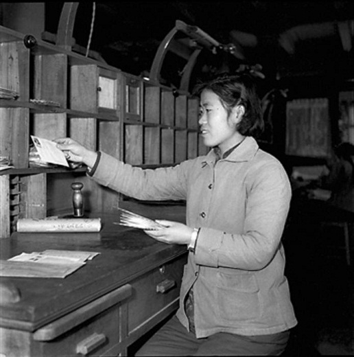 1959年,全國群英會代表、北京市東四郵電局投遞員羅淑珍投遞前在做準(zhǔn)備工作。工人日報 王光祿 攝