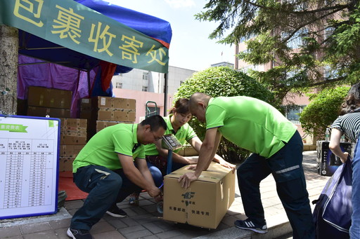 6月中旬,吉林省郵政分公司啟動(dòng)畢業(yè)季校園包裹項(xiàng)目,選派專(zhuān)職攬收員進(jìn)駐校園,為畢業(yè)生提供免費(fèi)上門(mén)取件、包裝等服務(wù)。該分公司還利用線上掃碼自助下單平臺(tái),提高電子面單使用率,同時(shí)宣傳郵政包裝箱綠色、環(huán)保、可循環(huán)性,助力綠色郵政建設(shè)。圖為郵政工作人員在吉林大學(xué)校園內(nèi)設(shè)點(diǎn)收寄畢業(yè)生包裹 □吉林記者 郭慧婷 通訊員 孫作偉 攝影報(bào)道