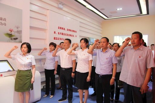 大家通過圖片展示、聲像傳播、情景體驗等形式,觀看了黨員干部違法違紀的典型案例,感受了違法違紀行為所帶來的嚴重后果。此外,大家還重溫了入黨誓詞。