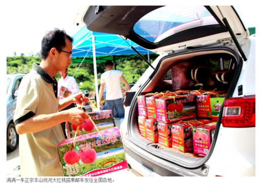 “助力精準(zhǔn)扶貧,打造郵政品牌,是我們履行央企責(zé)任擔(dān)當(dāng)?shù)捏w現(xiàn),希望借此次血桃熱銷的機(jī)會(huì),為郵政電商扶貧進(jìn)行更多的嘗試,這也是我們服務(wù)‘三農(nóng)’的新突破?!毙⒉止究偨?jīng)理李晶對(duì)前來(lái)采訪的當(dāng)?shù)孛襟w介紹道。