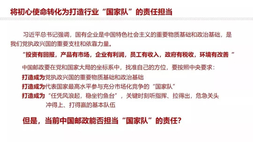 自1998年郵電分營以來,中國郵政取得巨大成就,但是,新時代黨和國家對中國郵政提出了新的要求,必須將“不忘初心、牢記使命”轉(zhuǎn)化為新時代郵政的責(zé)任擔(dān)當(dāng)。“人民郵政為人民”,滿足人民群眾日益增長的美好用郵需求,就是踐行“為人民謀幸?!钡闹袊]政責(zé)任所在。