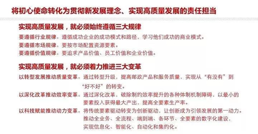 習(xí)近平總書記在“不忘初心、牢記使命”主題教育工作會議上深刻闡述了開展主題教育的重大意義、根本任務(wù)、目標(biāo)要求和重點措施。廣大郵政黨員干部要進一步用習(xí)近平新時代中國特色社會主義思想武裝頭腦,指導(dǎo)實踐,緊扣郵政初心使命,緊密結(jié)合工作實際,將初心使命轉(zhuǎn)化為強烈的政治自覺、思想自覺和行動自覺,堅持質(zhì)量第一、效益優(yōu)先,推動企業(yè)高質(zhì)量發(fā)展,把中國郵政打造成為行業(yè)“國家隊”。