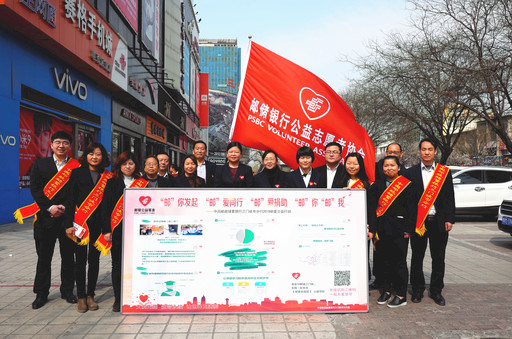 河南省分行的郵愛志愿者走上街頭,宣傳公益。