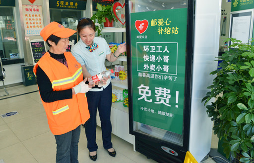 奔牛支局內(nèi)設(shè)有“郵愛心補(bǔ)給站”,免費(fèi)為戶外工作者提供飲用水等解暑用品,用心擦亮郵政品牌。
