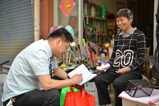 否定、完善,再否定、再完善,奔牛支局一路向好。圖為奔牛支局局長(zhǎng)唐明走訪沿街商戶。