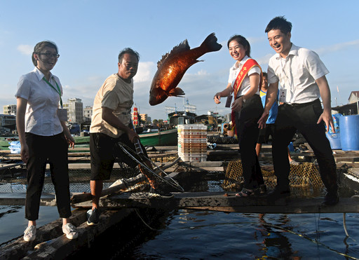 圖為陵水縣支行支持的新村鎮(zhèn)石斑魚(yú)養(yǎng)殖戶林家偉喜獲豐收?!鹾D嫌浾?nbsp; 梁磊 攝影報(bào)道