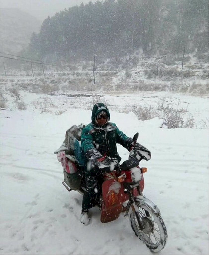 10多年前的孟山鄉(xiāng),條件十分艱苦,環(huán)境十分惡劣。那時的孟山鄉(xiāng)一帶鮮有橋梁,每次暴雨時節(jié),郭成明為了不讓用戶的郵件受到損失,每次過河前都將郵件用塑料包好,冒著大雨往返河流15次,將郵件完好無損地交到收件人手中。雖說每次都是有驚無險,但長途的跋涉“危險”也常伴左右,記得那是2010年冬天的一個傍晚,天色漸暗,他送完最后一個郵件想趁著天還沒有全黑趕回家中,可就在出村不遠(yuǎn)的一條羊腸小道上,前方突然出現(xiàn)大片暗冰。他急踩剎車后,摩托車朝著路邊深溝沖了過去。他急忙握緊車把調(diào)轉(zhuǎn)方向,卻又撞向了路邊的山崖,重重地將他摔在了地上。這一次的經(jīng)歷造成了郭成明腿部靜脈曲張、腰椎間盤突出的傷痛,可他仍然堅(jiān)持在這條郵路上跋涉,從來沒有抱怨過。