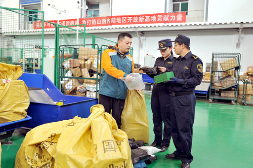 日前,山西省郵政分公司開通了太原至美國芝加哥的國際航空直達(dá)郵路。該郵路每周三、周五、周日共3個頻次,通過直封、直飛、直達(dá),山西寄達(dá)美國全境的國際郵件全程時限將縮短2天以上,有助于更好地推動全省跨境電商業(yè)務(wù)的快速發(fā)展。圖為海關(guān)和郵政人員共同查驗發(fā)往美國的郵件?!跤浾?nbsp; 武亞亮 攝影報道
