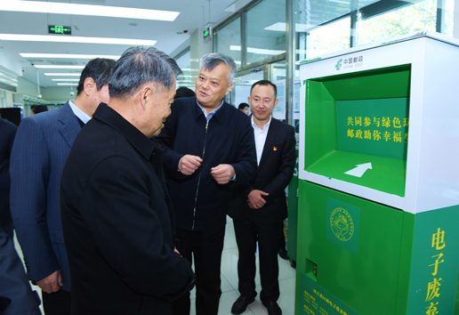 走進(jìn)百萬莊支局營業(yè)廳,楊傳堂一行首先觀看了中國郵政綠色行動宣傳片。中國郵政于2018年率先啟動了綠色行動,系統(tǒng)部署綠色包裝、綠色運輸和綠色金融三大工程,下發(fā)了綠色行動三年規(guī)劃,全力以赴將綠色行動推向深入,致力于治理企業(yè)包裝污染和運輸污染、致力于支持全社會污染防治工作。李丕征還介紹了中國郵政成立綠色包裝創(chuàng)新實驗室、加強(qiáng)綠色包裝技術(shù)創(chuàng)新研發(fā)等情況,楊傳堂對此給予肯定。