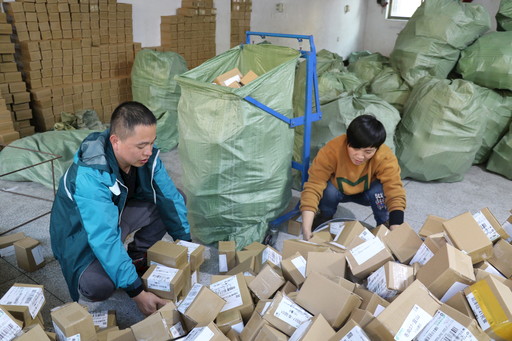 為了將包裹及時運送到處理中心,武義縣寄遞事業(yè)部快包部員工動員家屬齊上陣。11月11日深夜,共有24位攬收員家屬參與了包裹攬收工作。1點30分,快包部“準加盟制”經(jīng)理廖揚春和攬收員分別帶著他們的家屬來到大客戶柯小林的辦公地點,對包裹進行裝袋、裝車,他們動作嫻熟,一刻都不懈怠,不一會兒豆大的汗珠就從額頭上落了下來?!霸瓉砦疫€擔(dān)心今年‘雙11’業(yè)務(wù)量這么大,郵政的攬收速度會比往年慢,沒想到你們連家屬都用上了,速度杠杠的,真讓我大吃一驚。”柯小林夸贊道。