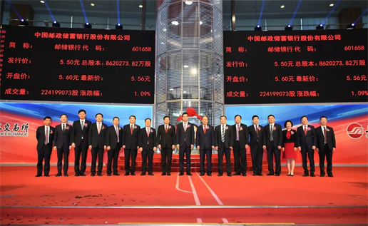 今日,中國郵政儲(chǔ)蓄銀行又迎來改革發(fā)展史上一個(gè)重要的里程碑,中國郵政儲(chǔ)蓄銀行A股股票(證券簡稱“郵儲(chǔ)銀行”,證券代碼“601658”)正式在上海證券交易所上市,標(biāo)志著國有大型商業(yè)銀行“A+H”兩地上市完成收官。據(jù)悉,郵儲(chǔ)銀行此次A股發(fā)行價(jià)格為5.50元/股,“綠鞋”前募資金額為284.5億元,“綠鞋”后預(yù)計(jì)為327.1億元。