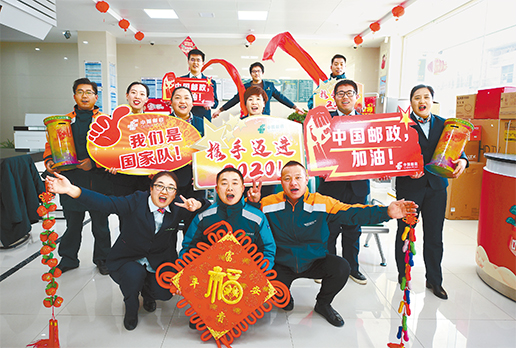 2020年是全面建成小康社會的決勝之年,對于剛剛改制的中國郵政來說,又將是激動人心的一年。站在新的時間節(jié)點,一線員工正以全新面貌投入到推進企業(yè)高質(zhì)量發(fā)展之中。圖為江蘇省徐州市銅山區(qū)大黃山郵政支局員工喜迎新年?! 鮿⒘⒚?攝影報道