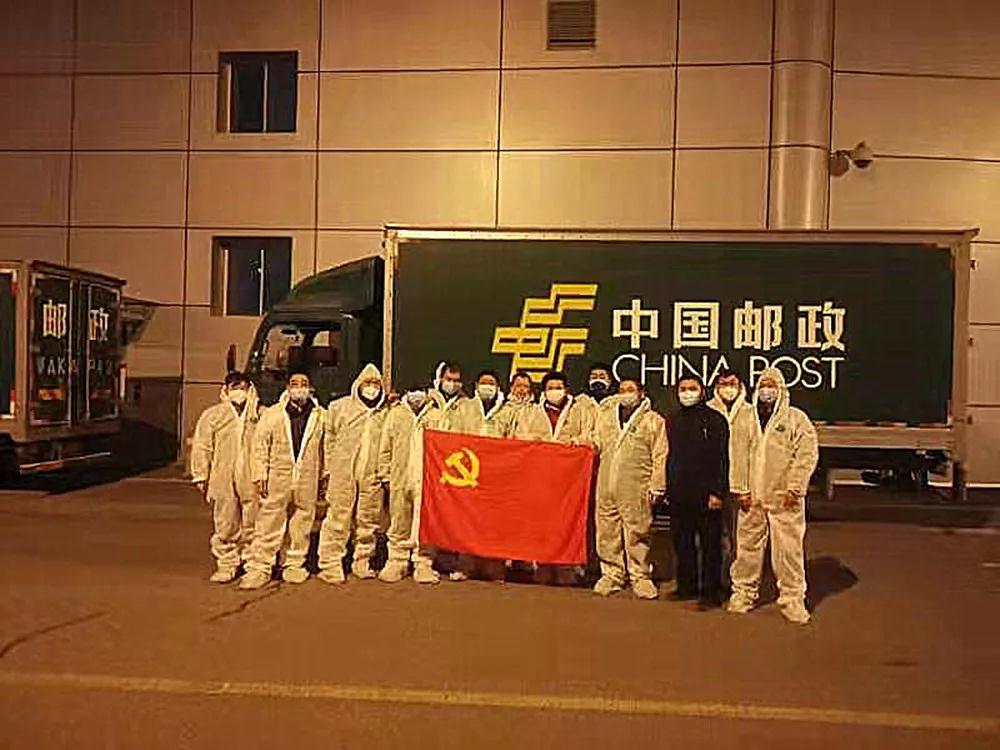 上午9時,一切就緒后,24名郵政突擊隊員迅速投入了轉(zhuǎn)運物資的戰(zhàn)斗。突擊隊員們分工明確,秩序井然,有的運送辦公用品,有的運送防控物資,有的運送生活用品。裝車、運輸、卸車,在緊張而有序的忙碌中,一切節(jié)點都按分鐘來計算,隊員們不敢有片刻懈怠。從常福新城總庫到火神山醫(yī)院的6公里道路上,9臺郵車不停地來回穿梭,暢通無阻。突擊隊員們深知搶運這批物資的重大責(zé)任和特殊意義,不知苦,不畏難,只想為抗擊疫情多貢獻一份力量。
