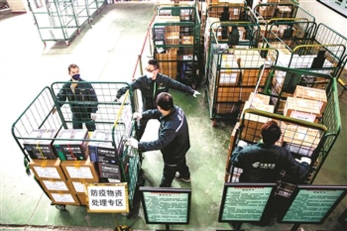 北京郵區(qū)中心局作為郵件集散地和分揀處理運(yùn)輸中心,為了讓捐贈(zèng)物資快速寄達(dá)武漢,對(duì)防疫物資采取專人接收、優(yōu)先處理的方案,并開通綠色通道,保障捐贈(zèng)物資全程單獨(dú)處理,內(nèi)部處理環(huán)節(jié)提速兩個(gè)多小時(shí)。