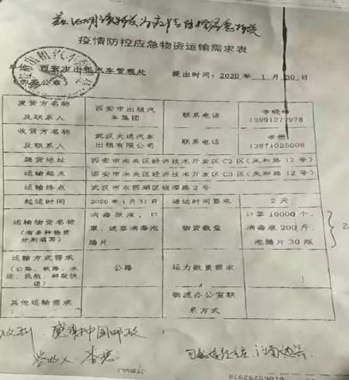 下午1:00,西安市分公司運(yùn)送此批物資的車輛剛剛停穩(wěn)在郵件處理中心接發(fā)平臺(tái)前,西安郵區(qū)中心局緊急抽調(diào)的裝車人員便開(kāi)始了緊張的卸車裝車作業(yè)。下午2:00,抗疫物資裝車完畢,運(yùn)輸中心駕駛員桑為民和李寧再次踏上馳援武漢的征程,并于2月1日早8:10順利到達(dá)卸貨點(diǎn),將疫情防控應(yīng)急物資安全送達(dá)接收方——武漢大通汽車出租有限公司?!案兄x中國(guó)郵政!”收到急需物資的客戶忍不住在簽收單上寫(xiě)下自己的心聲??吹浇邮辗叫盾嚾耸植蛔?,駕駛員桑為民、李寧顧不得一路疲憊,又主動(dòng)幫助卸車,盡快將應(yīng)急物資交付客戶手中。這次特殊的郵運(yùn)工作也得到了社會(huì)媒體的關(guān)注,1月31日晚,陜西電視臺(tái)《都市快報(bào)》欄目對(duì)此事進(jìn)行了報(bào)道。