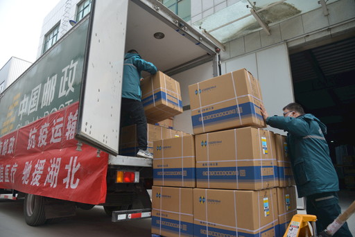 為確保防疫物資及時運(yùn)送,河南省、新鄉(xiāng)市、長垣市三級郵政企業(yè)緊急響應(yīng)、全力支撐,組織人員和車輛,協(xié)調(diào)中間環(huán)節(jié),為開通專線做足準(zhǔn)備。當(dāng)天16點(diǎn),我和連玉強(qiáng)戴上口罩,準(zhǔn)備好政府和單位共同出具的通行證明以及隔離服、口罩、鞋套、護(hù)目鏡等裝備,滿載著由愛心企業(yè)捐贈的2萬個醫(yī)用外科口罩、5萬雙橡膠外科手套,共計138箱防疫物資,緊急駛往武漢大學(xué)中南醫(yī)院。