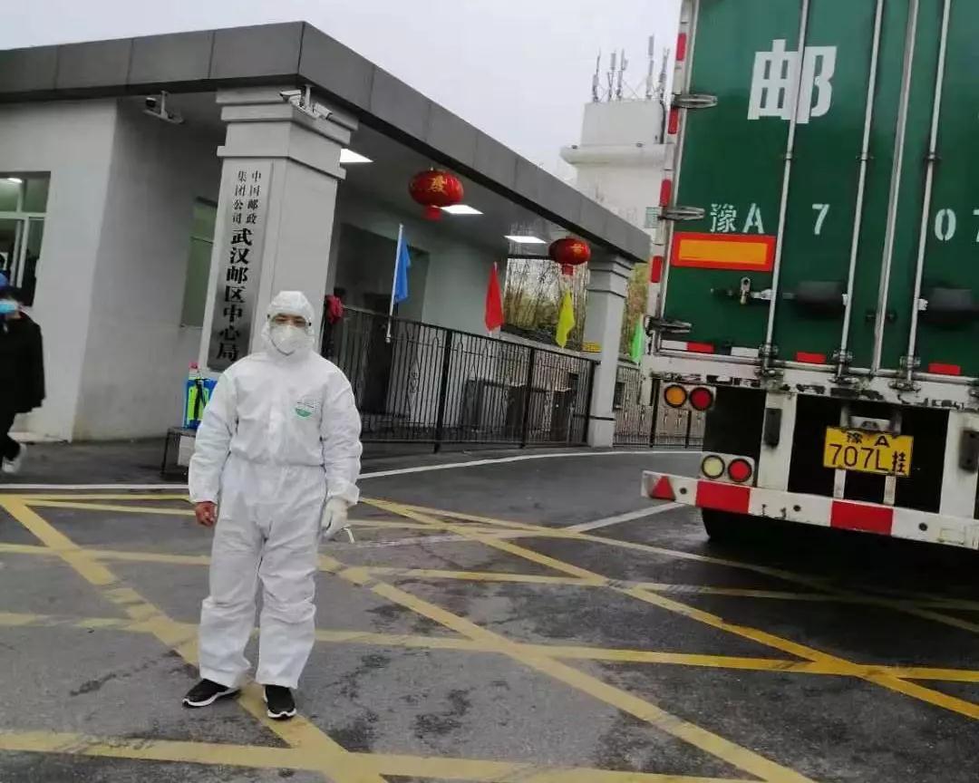 16點(diǎn)51分,已經(jīng)穿戴好口罩、防護(hù)服、護(hù)目鏡、長(zhǎng)膠手套,做好防疫準(zhǔn)備的張昌立、王照然順利抵達(dá)武漢郵區(qū)中心局,也預(yù)示著這批醫(yī)療物資將很快送達(dá)目的地。郵件交接很快完成,稍作休整后,17點(diǎn)30分他們開(kāi)始驅(qū)車(chē)返回鄭州。