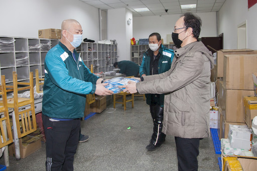 2月19日,馬敏杰得知一線員工防護(hù)用品緊缺的情況后,四處聯(lián)系,最終購(gòu)進(jìn)100個(gè)口罩,贈(zèng)送給投遞員。“一定要做好防護(hù)措施?!痹谕哆f班,馬敏杰只留下一句話便轉(zhuǎn)身離開(kāi)了。
