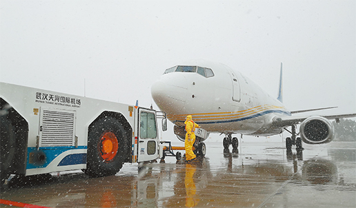 郵航直飛航班滿載防疫物資頂風(fēng)冒雪抵達(dá)武漢天河機(jī)場。 楊衛(wèi)東 提供