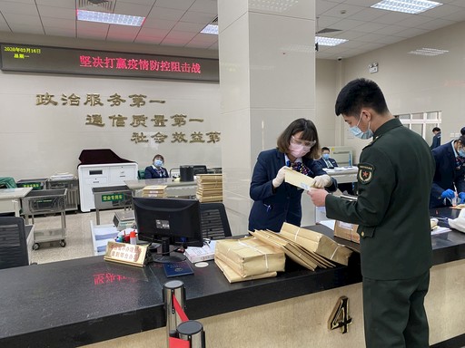 在采訪中,記者看到了北京機要局最近收到的兩封感謝信,分別來自武漢某部隊和北京市人民檢察院某分院。武漢某部隊感謝北京機要局對疫情防控文件的應急處理工作。接到從北京寄往武漢某部隊涉及疫情的機要文件后,北京機要局第一時間與湖北省機要局溝通協(xié)調(diào),打破了僅工作日投遞機要件的常規(guī)處理模式,3小時內(nèi)將文件妥投到位。“當疫情迅速蔓延之時,你們克服各種困難,把我們所需的機要文件及時投遞,為我們研究擬制疫情處置方案發(fā)揮了作用,特向你們表示衷心感謝?!蔽錆h某部隊在感謝信中寫道。