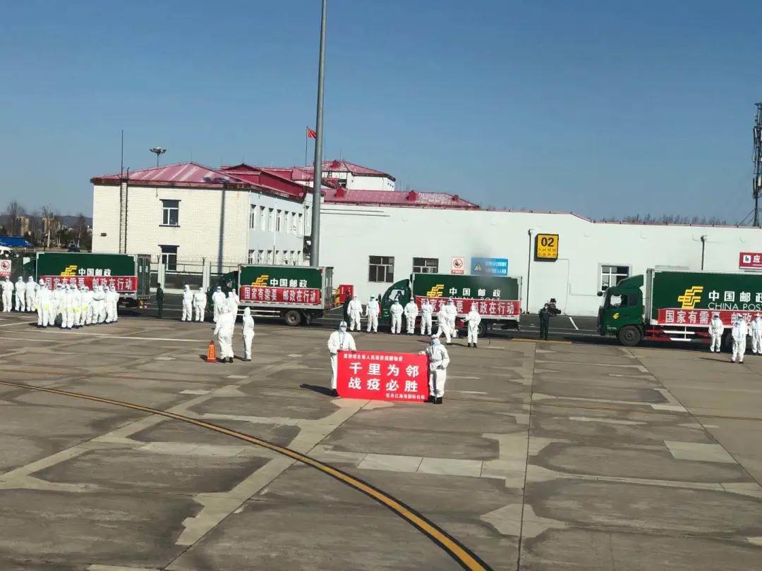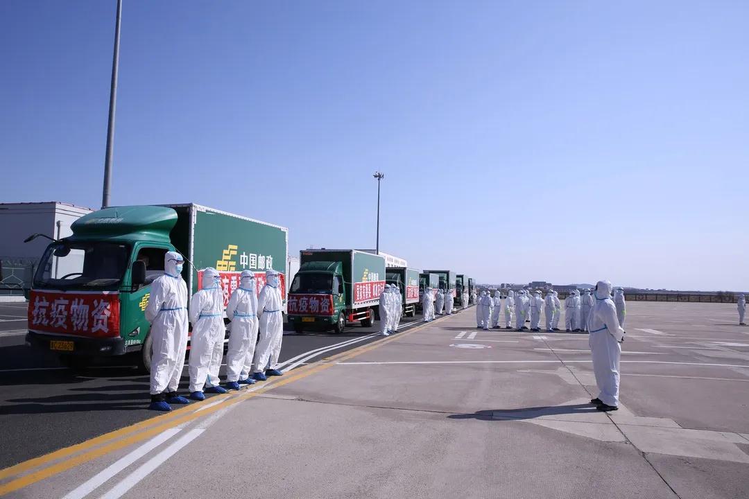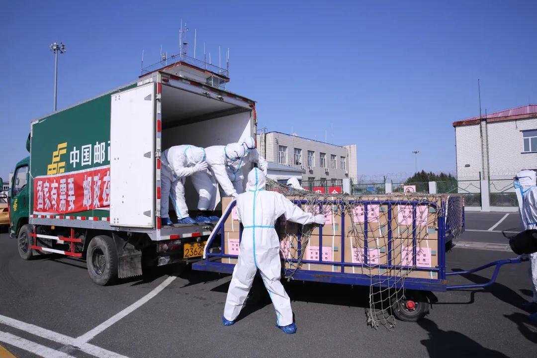 為及時(shí)將抗疫物資運(yùn)送到綏芬河,黑龍江省郵政分公司召開緊急會(huì)議,相關(guān)負(fù)責(zé)人趕赴哈爾濱、牡丹江兩大機(jī)場(chǎng)一線指揮,并迅速組織哈爾濱郵區(qū)中心局和牡丹江市郵政分公司展開航班物資接卸及陸路運(yùn)輸工作。哈爾濱郵區(qū)中心局接到通知后第一時(shí)間著手調(diào)配4臺(tái)22噸的郵政貨車,牡丹江郵區(qū)中心局緊急調(diào)配12噸、8噸、4噸等共10臺(tái)郵政貨車承擔(dān)運(yùn)輸任務(wù)。