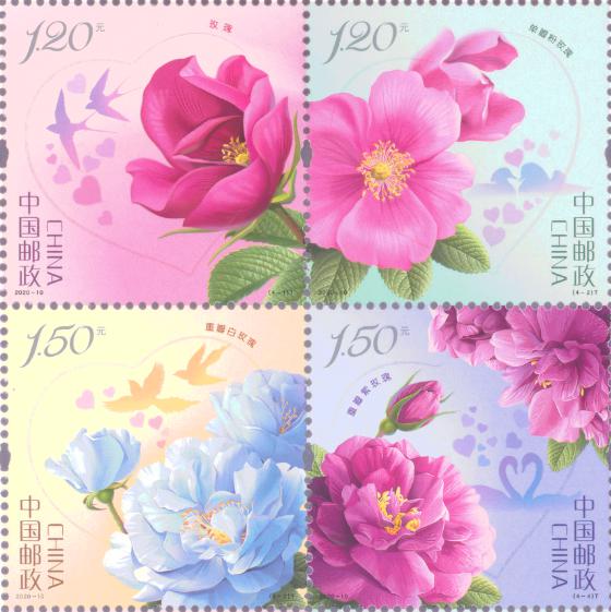 中國郵政定于2020年5月20日發(fā)行《玫瑰》特種郵票1套4枚。